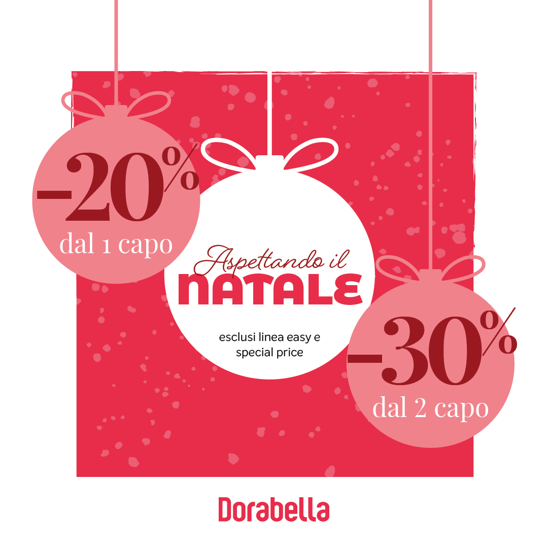 Aspettando il Natale con Dorabella! 20% dal 1° capo e 30% dal 2° capo (esclusi Easy e Special Price)! Scopri i look in store, ti aspettiamo!