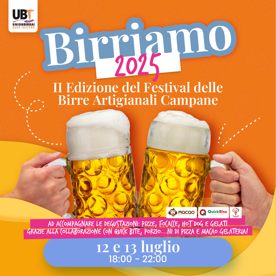 Due serate da gustare fino in fondo: torna Birriamo, il festival dedicato alle migliori birre artigianali campane. Ti aspettiamo con un’ampia selezione di birre da degustare, percorsi di assaggio personalizzati, street food sfizioso, intrattenimento musicale e tante curiosità tutte da scoprire.