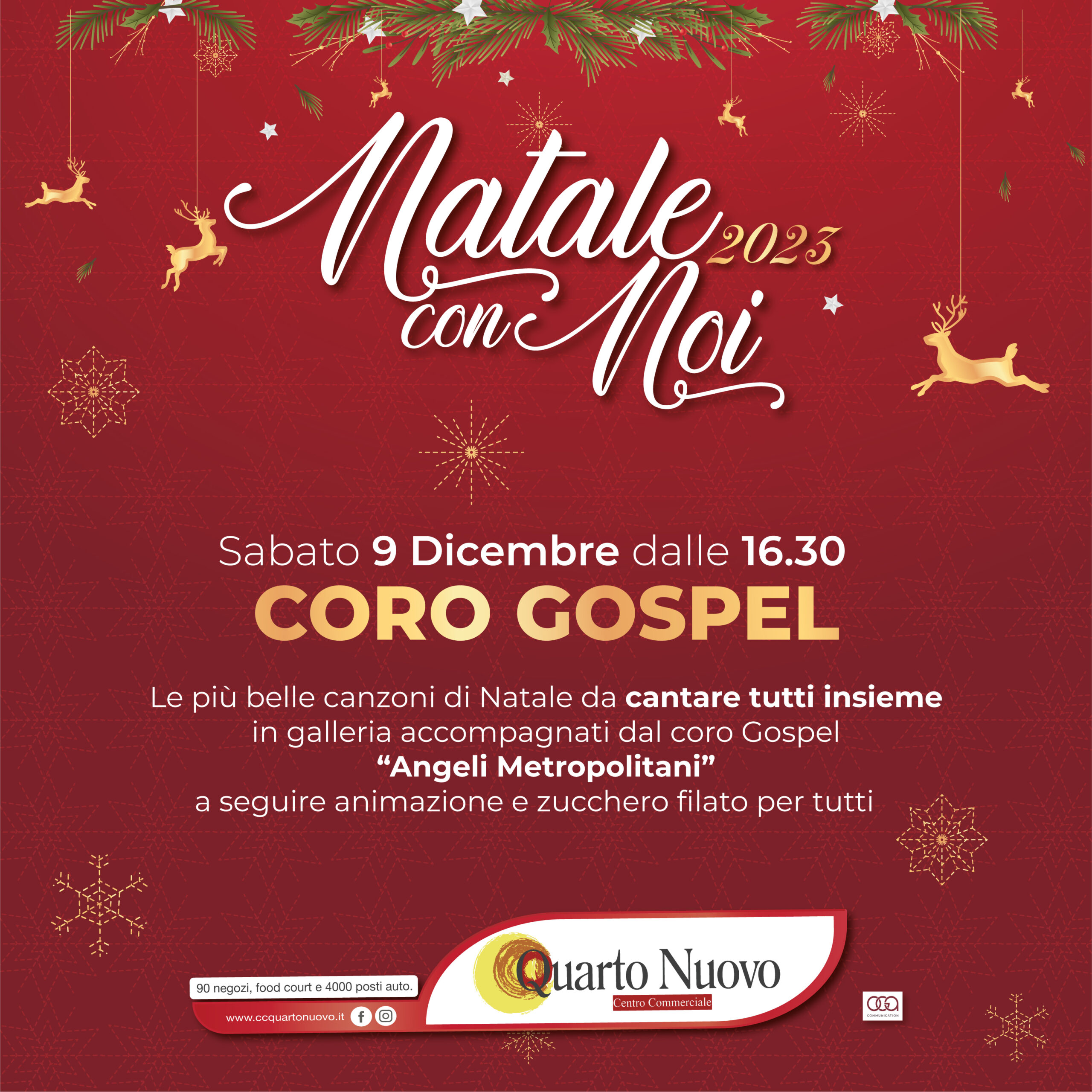 Sabato 9 dicembre dalle 16,30 Coro Gospel le più belle canzoni di Natale da cantare tutti insieme in galleria accompagnati dal coro Gospel “Angeli Metropolitani” a seguire animazione e zucchero filato per tutti