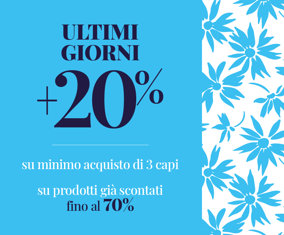 ANCORA PIù SALDI! Fino al 70% + 20%: acquista minimo 3 capi e ricevi subito uno sconto EXTRA del 20%!