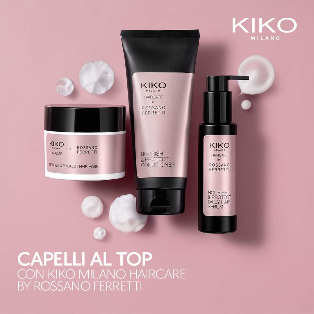 Capelli al TOP con KIKO Milano Haircare by Rossano Ferretti.  La linea, nata dalla fusione dell’expertise dell’hair-stylist e dell’innovazione nel mondo beauty di KIKO MIlano, offre risultati da salone. Prodotti facili da usare e ad alte prestazioni, con formule ricche di ingredienti di origini naturale, che rivoluzioneranno la tua haircare routine.